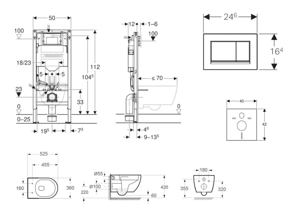 - pre závesné WC s pripojovacími rozmermi podľa EN 33 a presahom do 70 cm