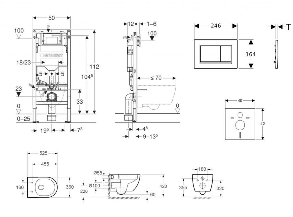 - na montáž do systémových stien Geberit Duofix čiastočne vysokých alebo vysokých na výšku miestnosti