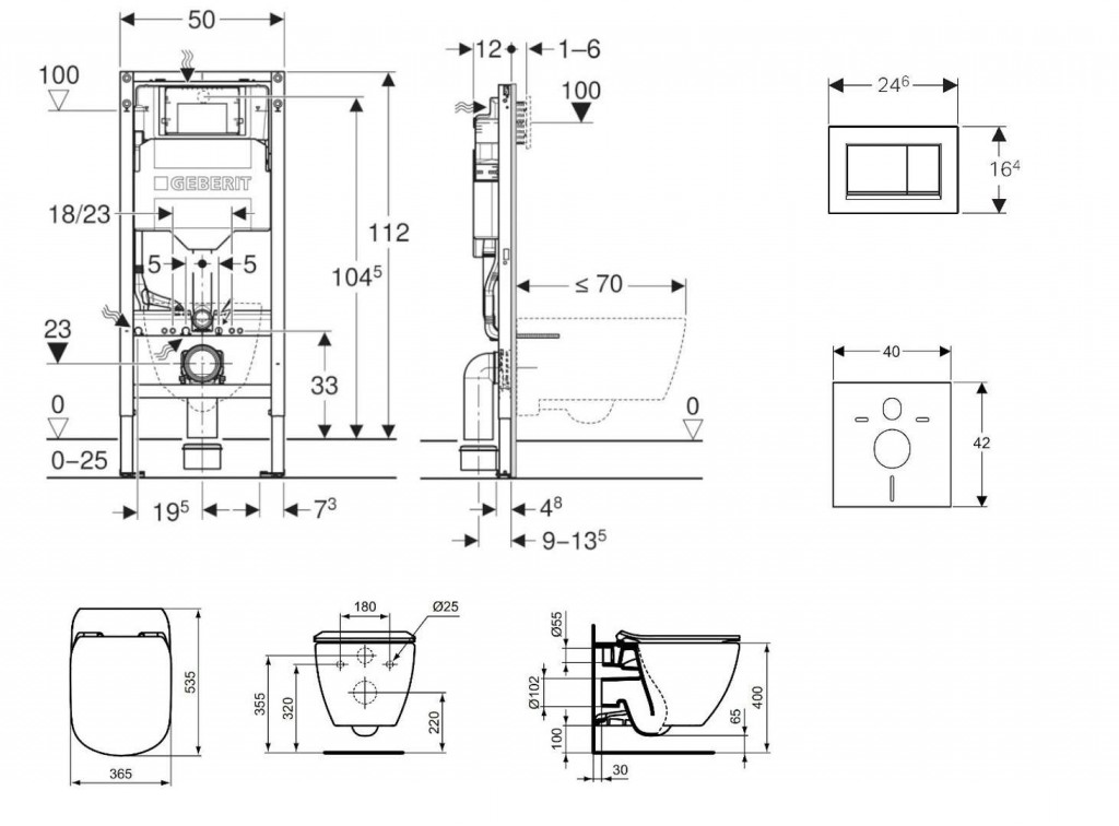 - na montáž do systémových stien Geberit Duofix čiastočne vysokých alebo vysokých na výšku miestnosti