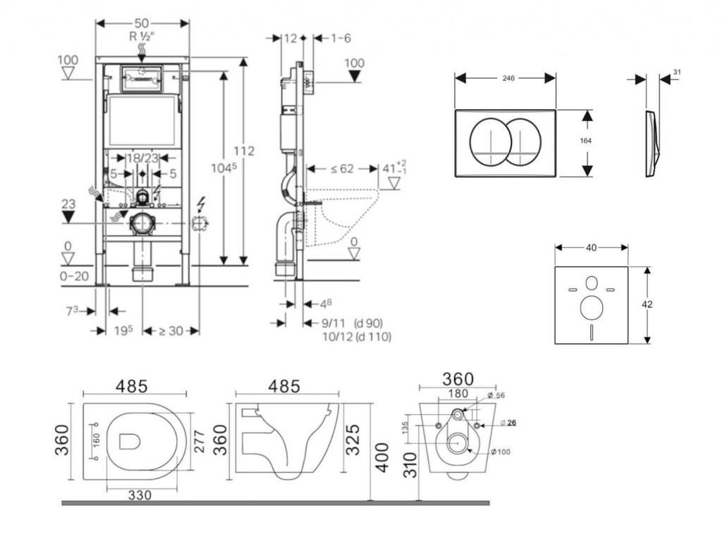 - pre montáž závesného WC so vzdialenosťou upevnenia 18 cm alebo 23 cm