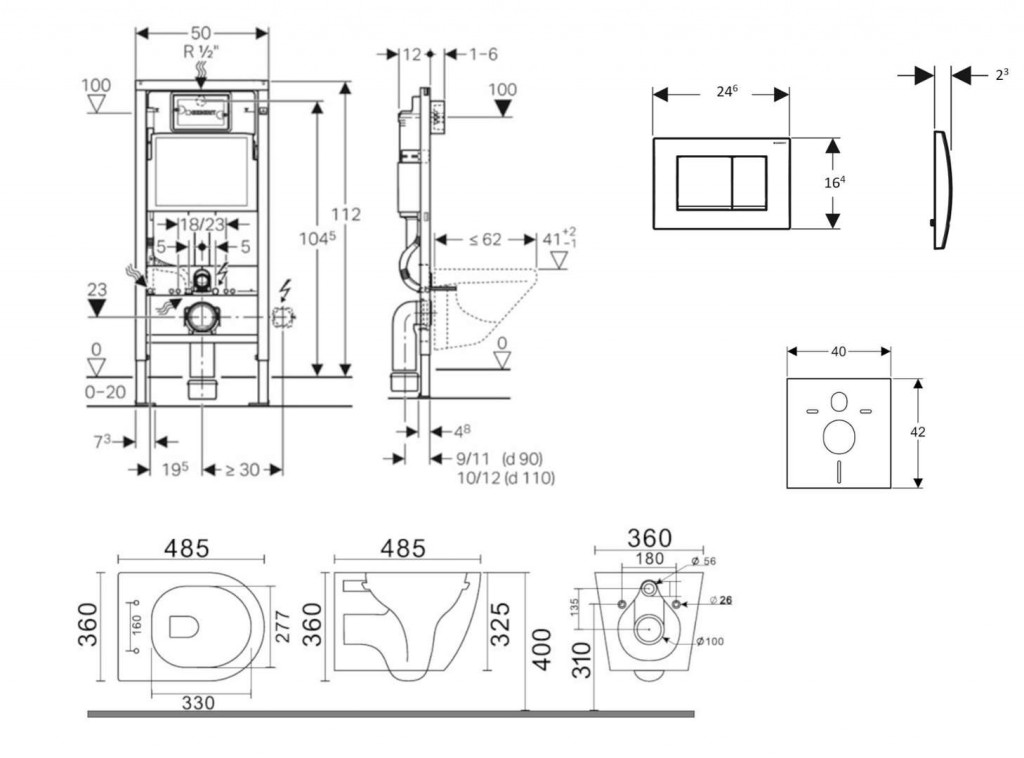 - pre montáž závesného WC so vzdialenosťou upevnenia 18 cm alebo 23 cm