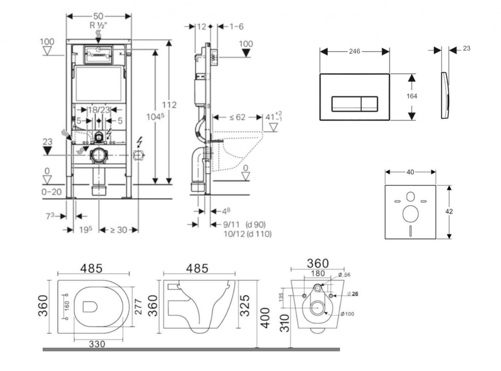 - pre montáž závesného WC so vzdialenosťou upevnenia 18 cm alebo 23 cm