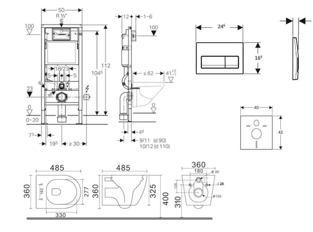 - pre montáž závesného WC so vzdialenosťou upevnenia 18 cm alebo 23 cm