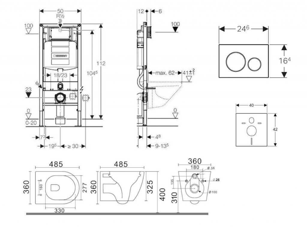 - pre závesné WC s pripojovacími rozmermi podľa EN 33:2011