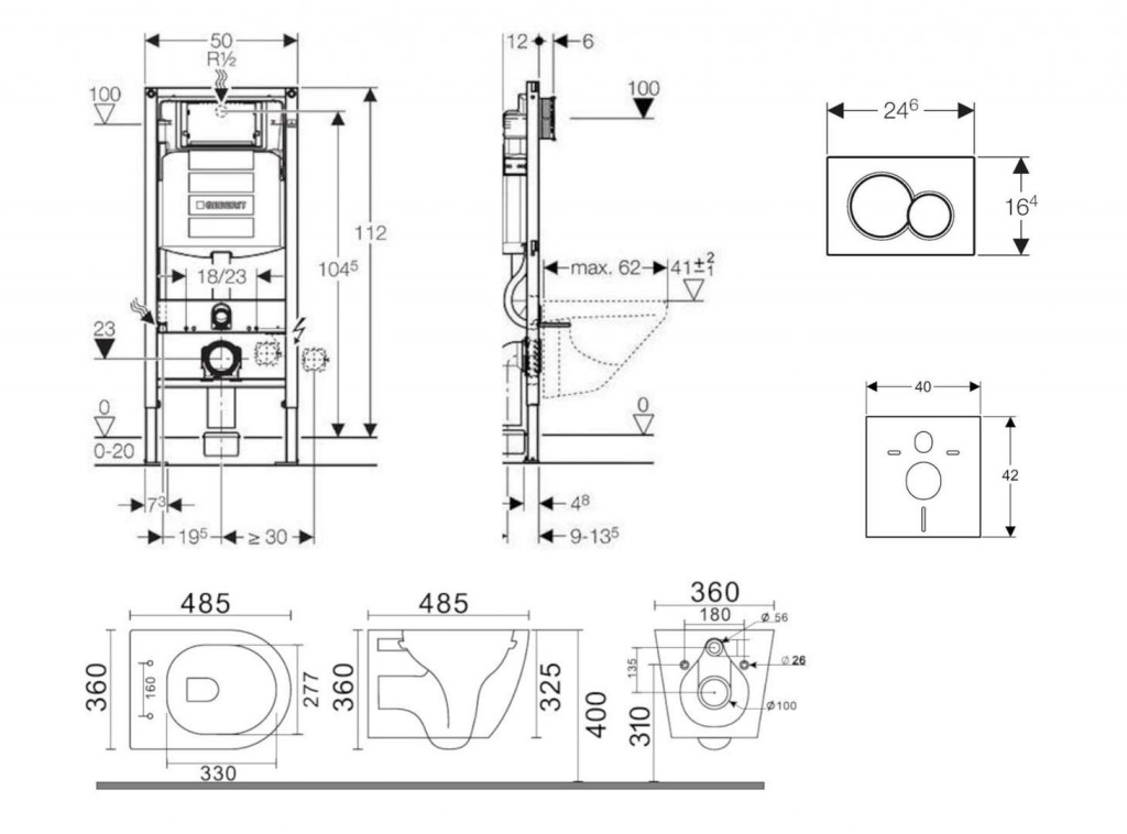 - pre závesné WC s pripojovacími rozmermi podľa EN 33:2011