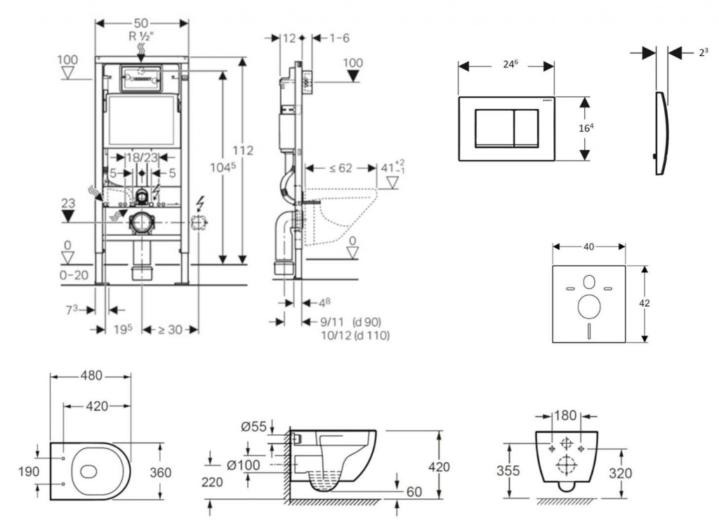 - predstenový inštalačný modul Geberit Duofix so splachovacou nádržkou pod omietku