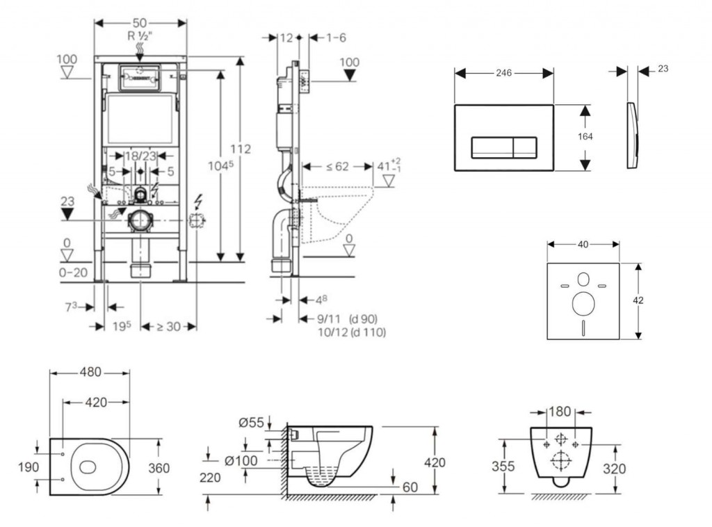 - pre montáž závesného WC so vzdialenosťou upevnenia 18 cm alebo 23 cm