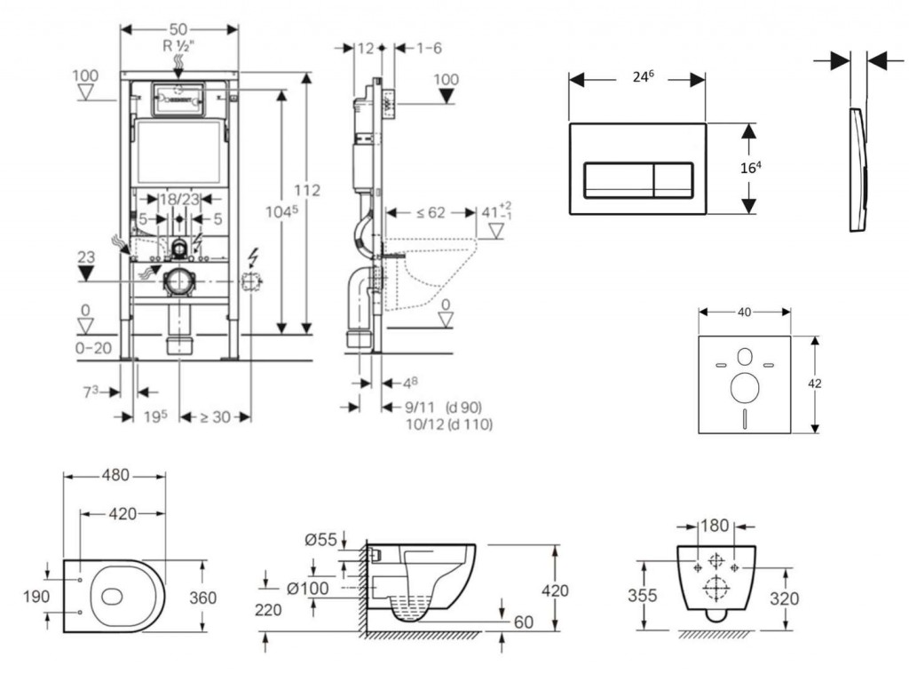 - pre montáž závesného WC so vzdialenosťou upevnenia 18 cm alebo 23 cm