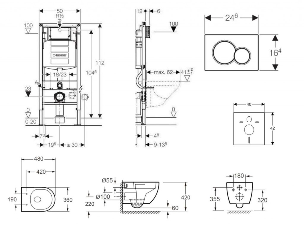 - na montáž do systémových stien Geberit Duofix čiastočne vysokých alebo vysokých na výšku miestnosti
