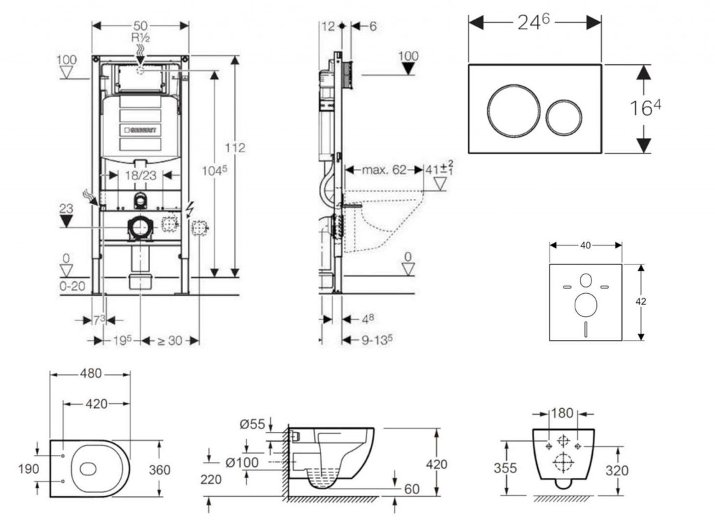 - na montáž do systémových stien Geberit Duofix čiastočne vysokých alebo vysokých na výšku miestnosti