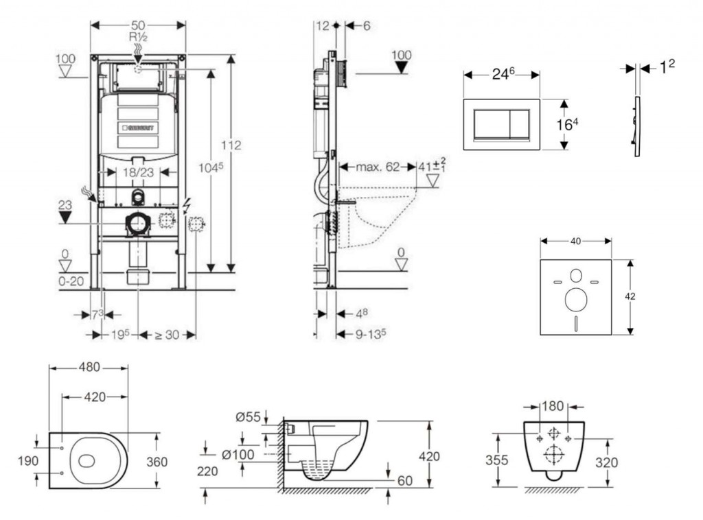 - na montáž do systémových stien Geberit Duofix čiastočne vysokých alebo vysokých na výšku miestnosti