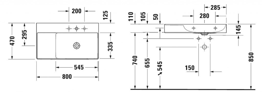 - s 1 otvorom pre umývadlovú batériu vpravo