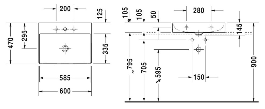 Nábytkové umývadlo bez prepadu