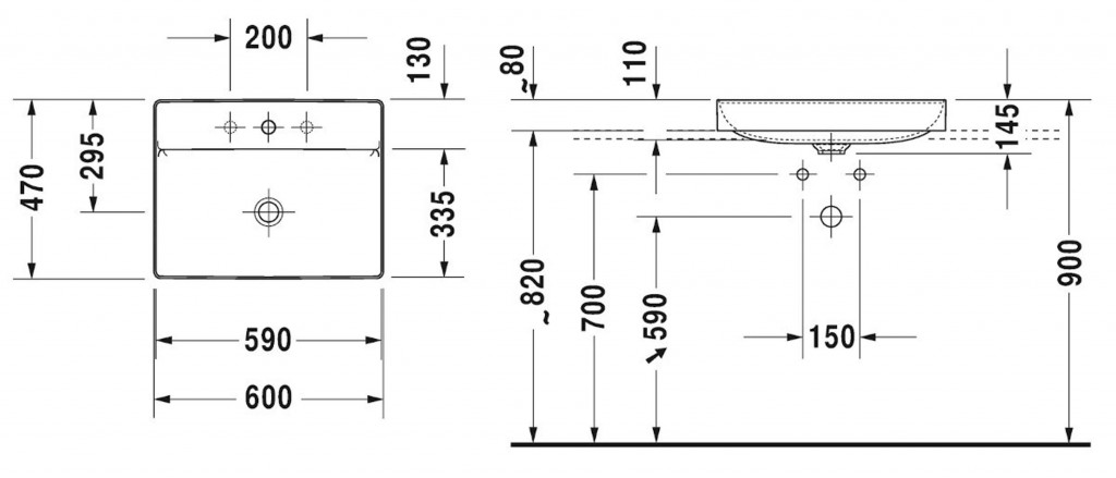 - zadná strana glazovaná, montáž vyžaduje odstup umývadla od steny