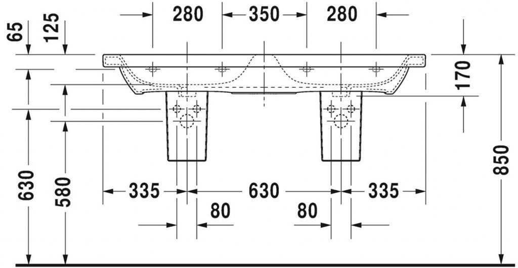 - s 1 otvorom pre umývadlovú batériu (pre každú umývadlovú časť)