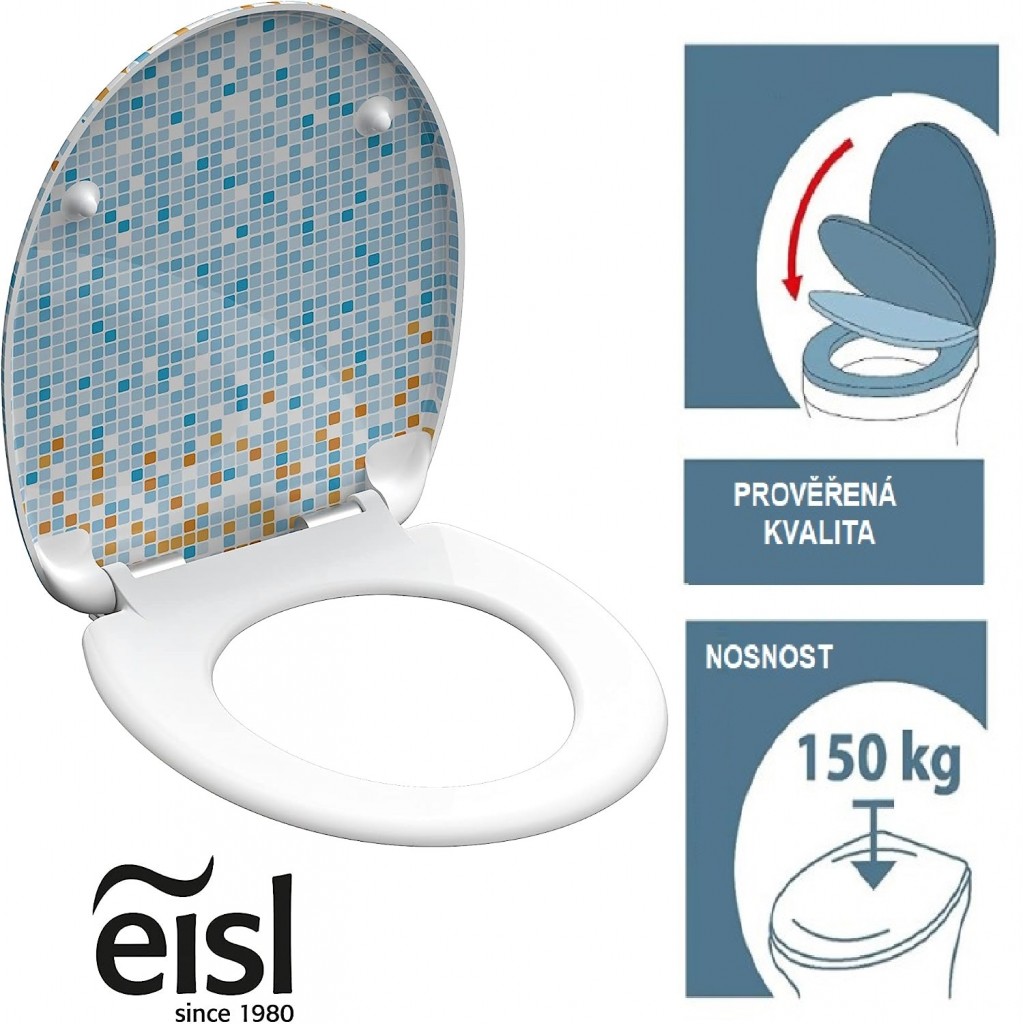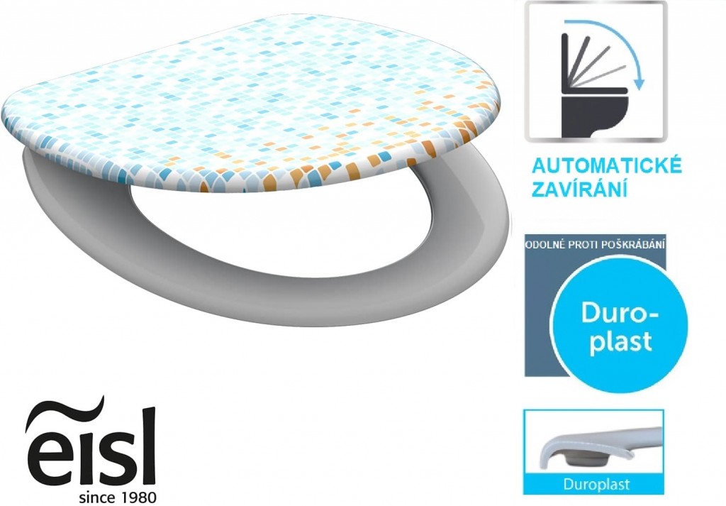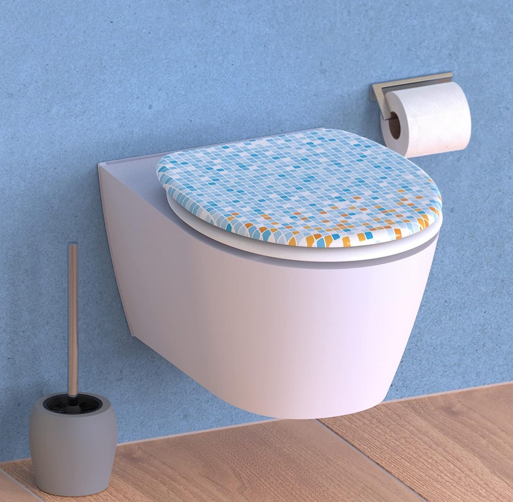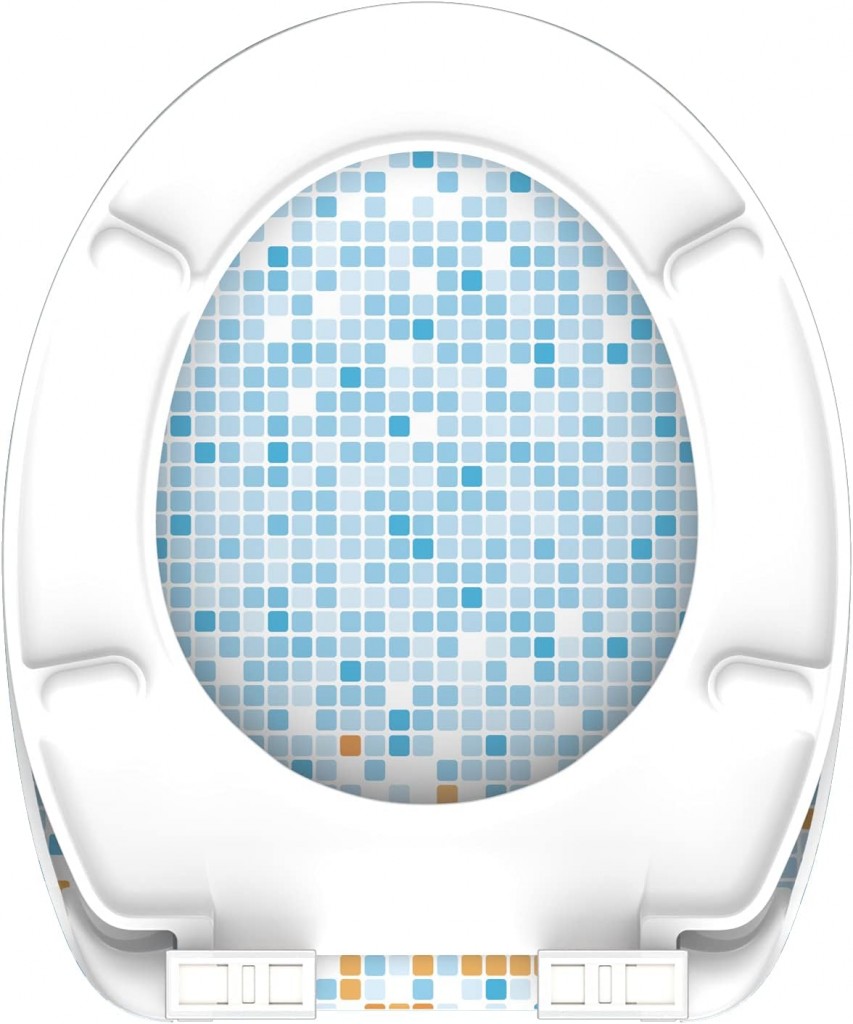 Duroplastové WC sedátko MOSAIC Modrá/oranžová, s automatickým spúšťaním