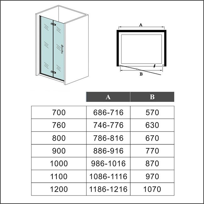 Spojením bočné steny (pozri príslušenstvo) sa zalamovacím dverami vznikne štvorcový alebo obdĺžnikový sprchovací kút.