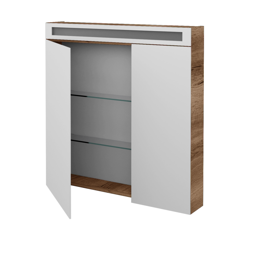 Kúpeľňová galérka AIR GA2NOE 80 - 50/30 je vyrobená z kvalitných LTD dosiek s možnosťou úpravy povrchu lakovaním (lesklé/matné) alebo v niektorom z našich dekorov a drevodekorov. K dispozícii je tiež úprava Individual podľa vzorníka RAL/NCS.