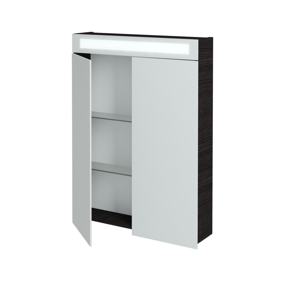 Kúpeľňová galérka AIR GA2OE 60 je vyrobená z kvalitných LTD dosiek. Predná časť galérky je riešená obojstranným otvárateľným zrkadlom umiestneným na značkových kovových pántoch Grass. Zrkadlo je k pántom prichytené pomocou špeciálnej zrkadlovej lišty (táto upevňovacia technológia je chránená českým patentom). V hornej časti galérky je umiestnené výkonné LED osvetlenie, ktoré veľmi vhodne osvetľuje aj vnútorný priestor galérky. Vnútri je umiestnená elektrická zásuvka (230 V) vrátane vypínača na osvetlenie. Vnútorné usporiadanie galérky AIR je riešené dvomi sklenenými poličkami. Tieto poličky je možné umiestniť v šiestich rôznych výškovo nastaviteľných pozíciách.