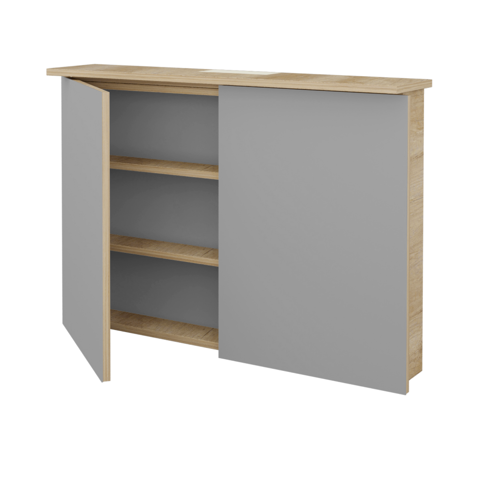 Galérka SANI GA2O 100 je konštruovaná v dvojdverovom prevedení s tým, že dvierka sa otvárajú cez korpus, čím sa zvýši šírka produktu. Svetlo zaisťuje LED osvetlenie (14,2 W) usadené v hornej časti galérky, na predstupujúcej rampe. Vďaka tomu bez problémov osvetlí aj vnútornú časť.