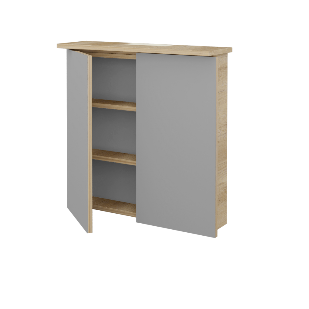 Parametre galérkyGalérka SANI GA2O 70 je konštruovaná v dvojdverovom prevedení s tým, že dvierka sa otvárajú cez korpus, čím sa zvýši šírka produktu. Svetlo zaisťuje LED osvetlenie (9,75 W) usadené v hornej časti galérky, na predstupujúcej rampe. Vďaka tomu bez problémov osvetlí aj vnútornú časť.