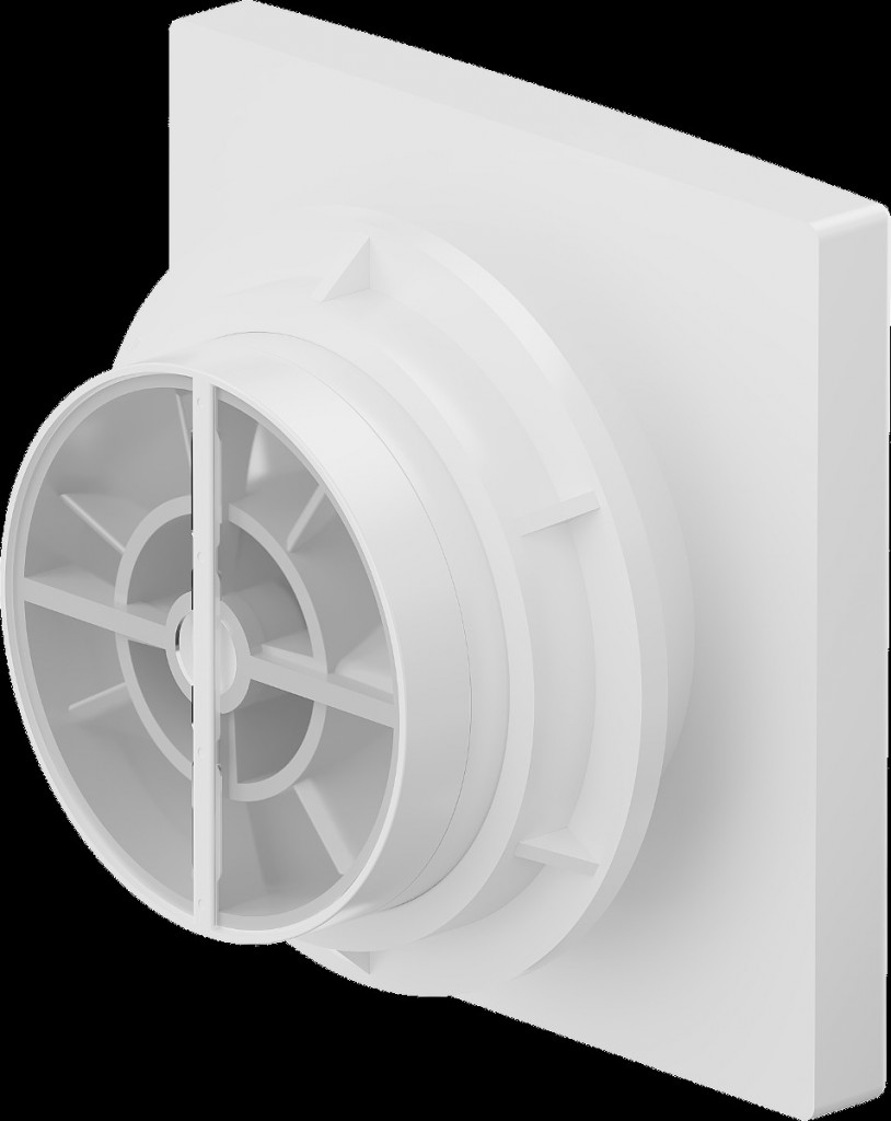 - spätná klapka, ktorá zabraňuje prúdeniu vzduchu späť do miestnosti z ventilačného potrubia