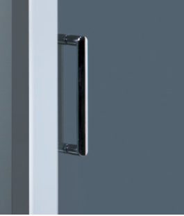 Dveře mají posuvný systém otvírání pomocí dvojitých koleček a odklápěcí systém pro snadné čištění