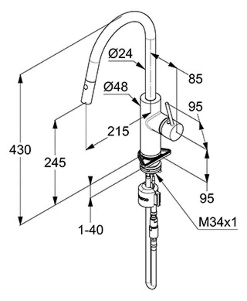 - dĺžka výtoku: 215 mm