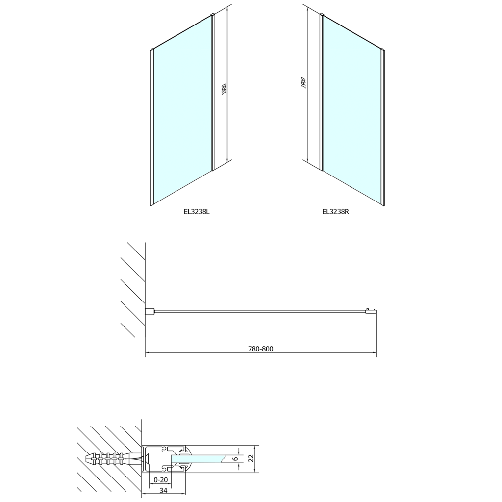 | Tvar | Pevná stěna ke sprchovým dveřím |