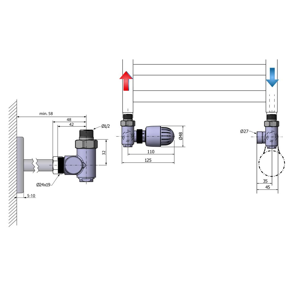 Kombinované pripojenie umožňuje ohrievať teleso ako centrálnym systémom vykurovania, tak využiť pre samostatný ohrev elektrickú vykurovaciu tyč mimo vykurovacej sezóny. Vykurovaciu tyč odporúčame s rovnakým alebo podobným výkonom podľa špecifikácie daného vykurovacieho telesa.