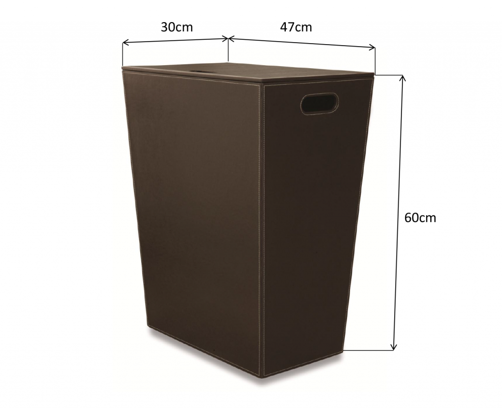 Stylové doplňky pro koupelnu v moderních barvách, vyrobené ze dřeva potaženého syntetickou kůží. Dokonalé zpracování je podtrženo ozdobným švem. Prádelní koš ECO PELLE se stane nepostradatelnou součástí koupelny.