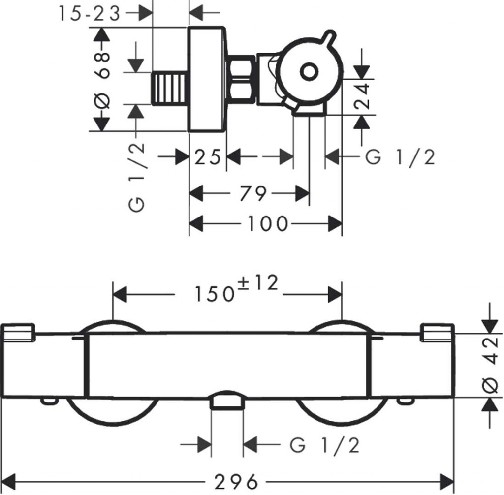 - rozteč stredov: 150 ± 12 mm
