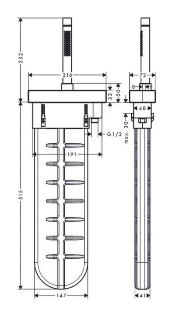 - maximálna dĺžka vytiahnutia ručnej sprchy 1,45 m