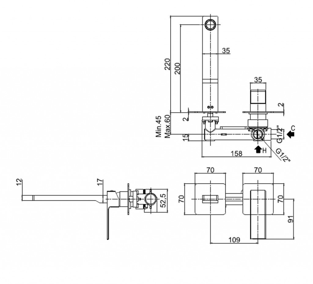 Umývadlová 2 prvková nástenná páková batéria pod omietku s telesom