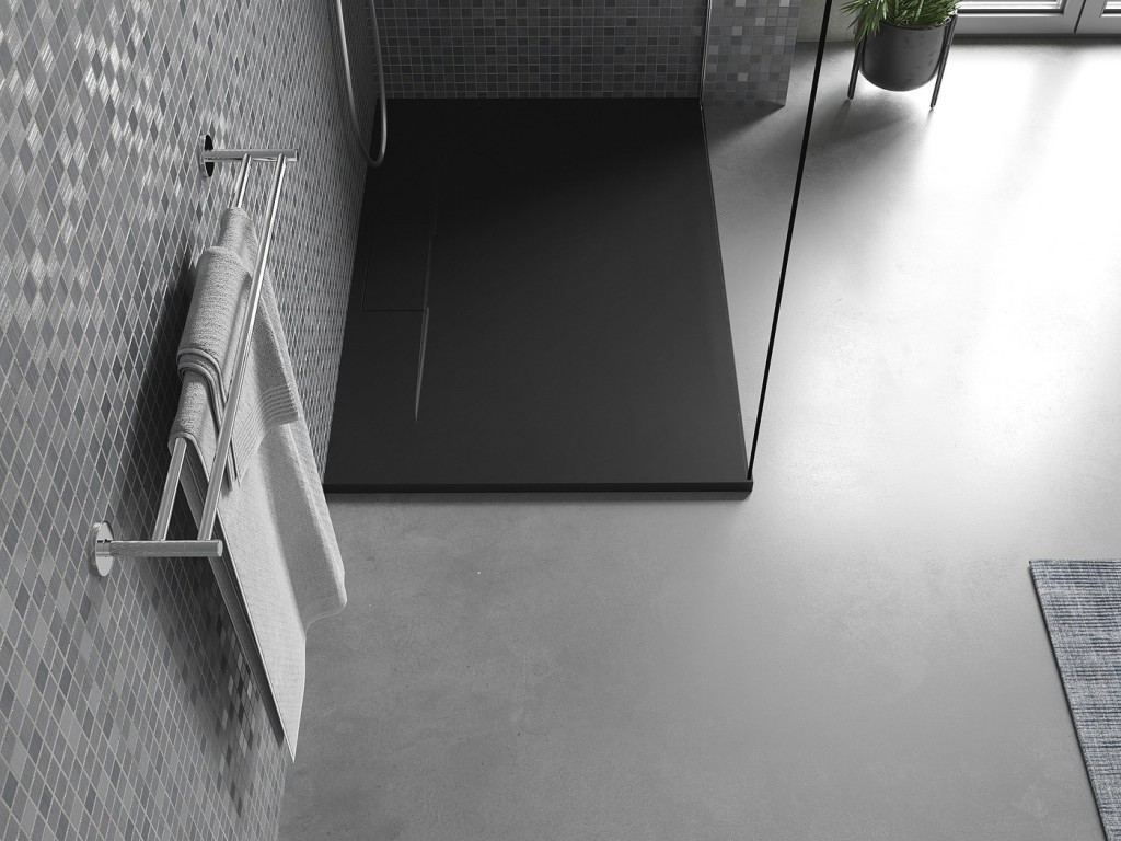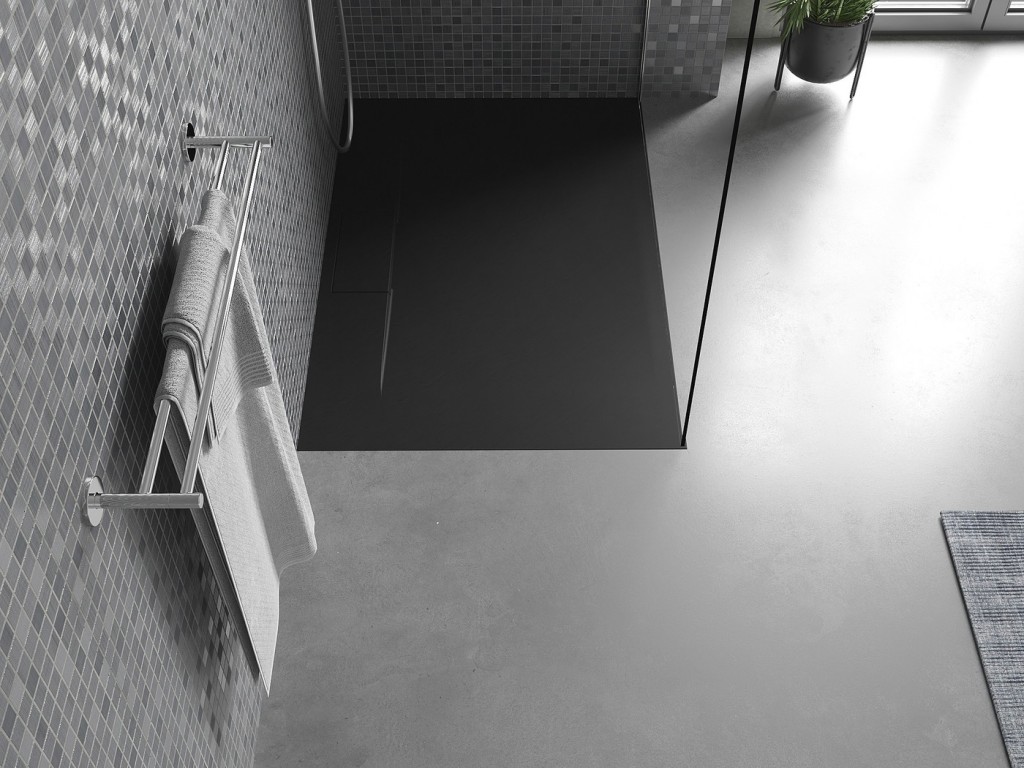 Mexen Egon je štýlová obdĺžniková sprchová vanička s rozmermi 150x90 cm, vyrobená z odolného materiálu SMC, ktorý zaisťuje vysokú odolnosť proti nárazom a deformáciám. Jej moderný čierny povrch s efektom kamennej štruktúry skvele zapadne do každého interiéru. Sprchová vanička je extrémne plochá, iba 2,6 cm vysoká, čo uľahčuje inštaláciu ako do podlahy, tak aj na podlahu. Ďalšou výhodou je možnosť rezania a sifón je možné čistiť zhora, čo sa premieta do pohodlného používania.