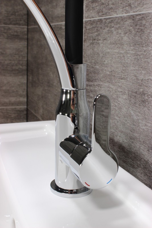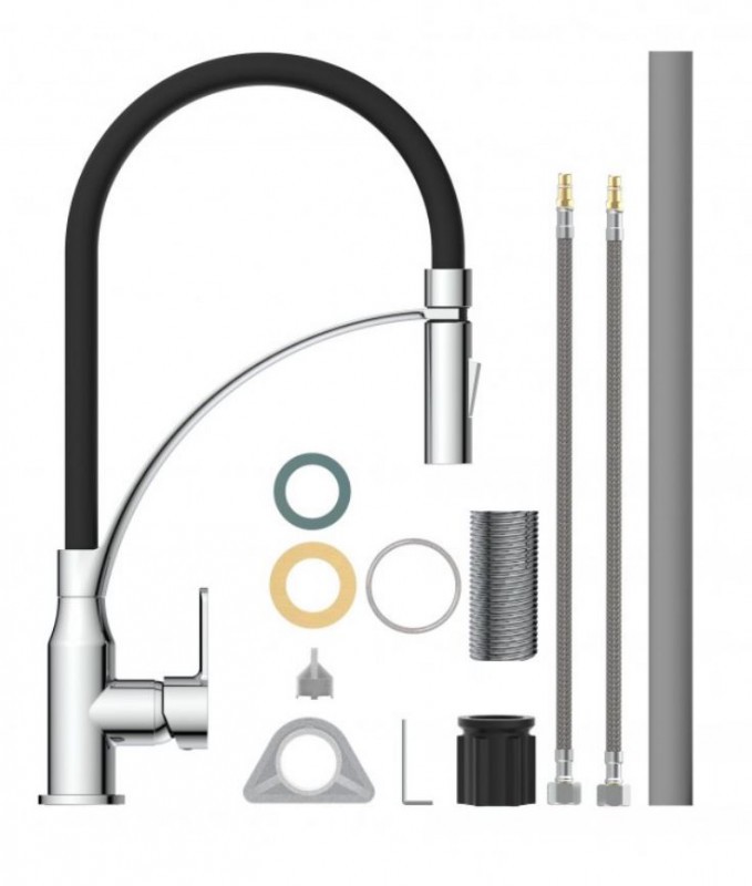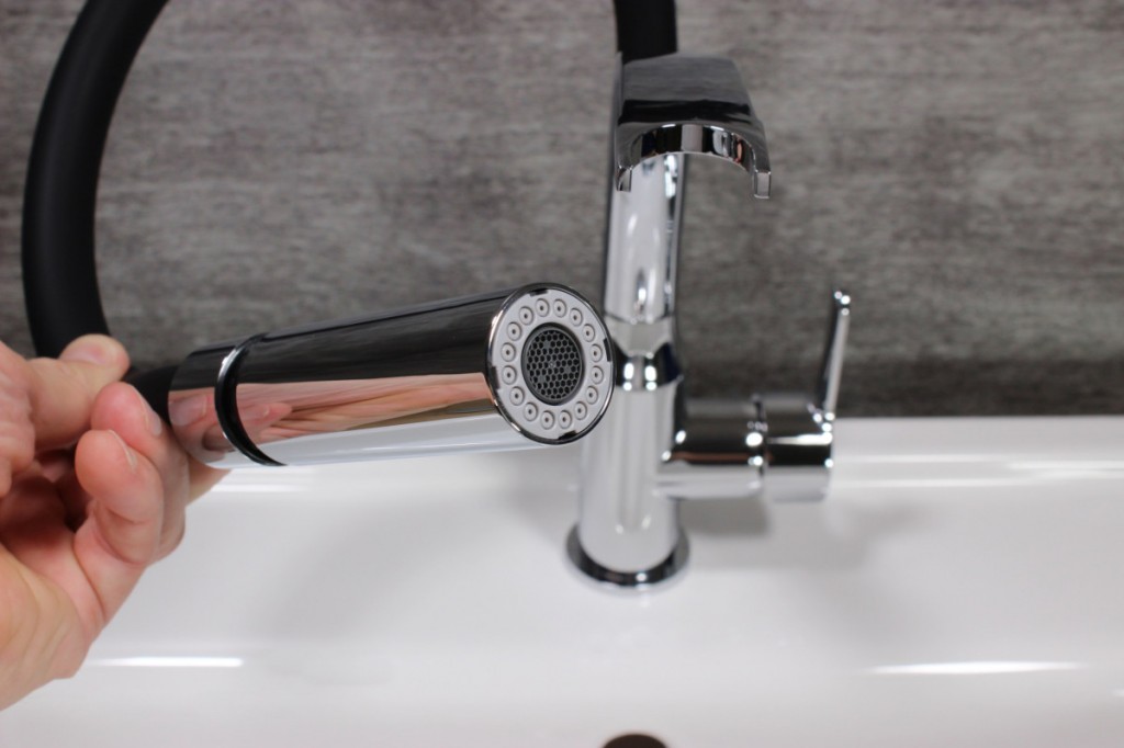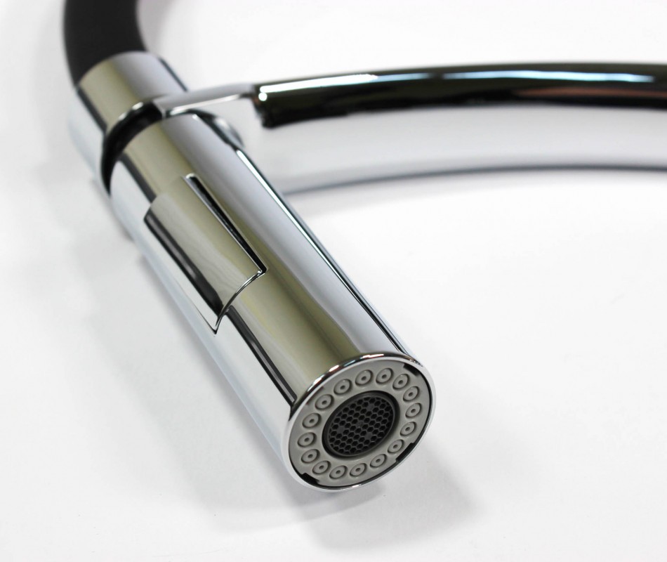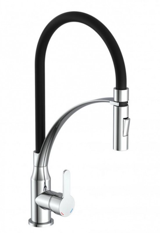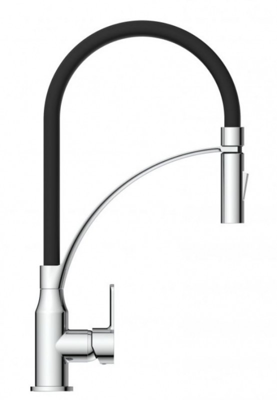 Vďaka kombinácii otočného výtoku a ohybnej hlavici je batéria ideálnou voľbou pre dvojité drezy. Kuchynská batéria disponuje funkciou studeného štartu tj. v stredovej polohe páky tečie iba studená voda.