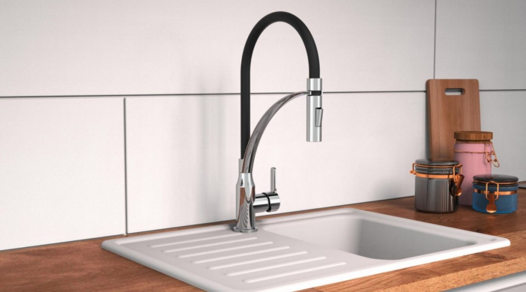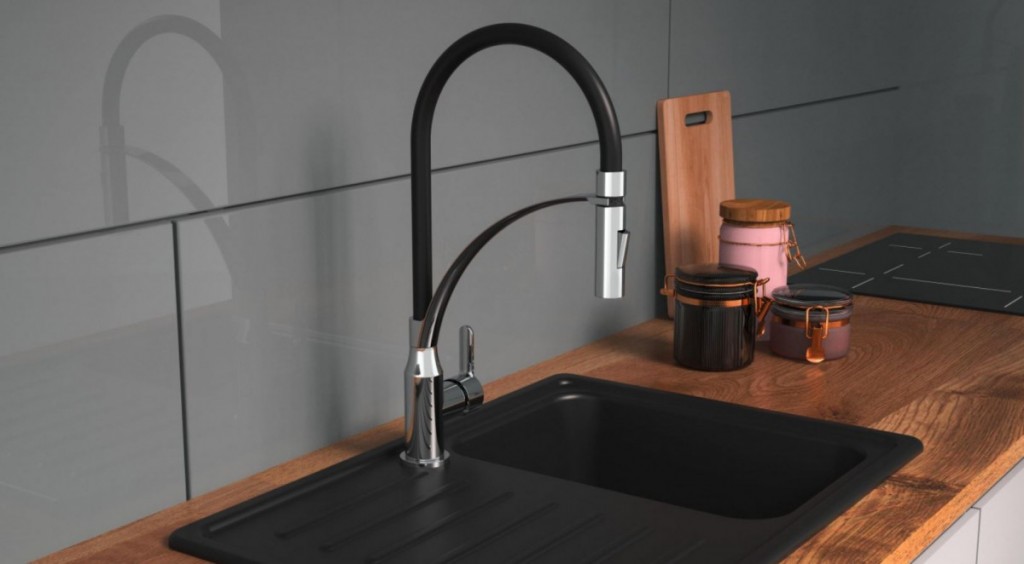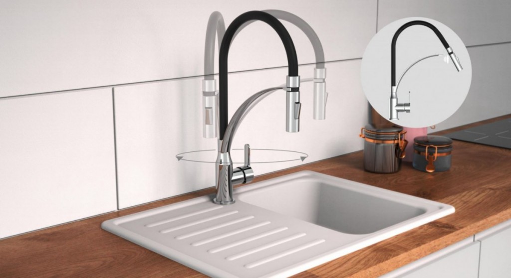 - praktická kuchynská batéria s otočným výtokom, ideálna pre dvojité drezy
