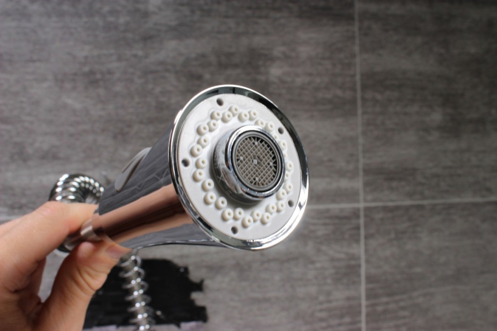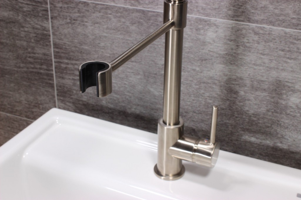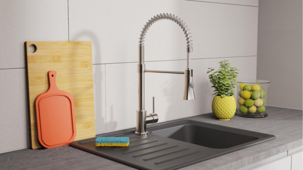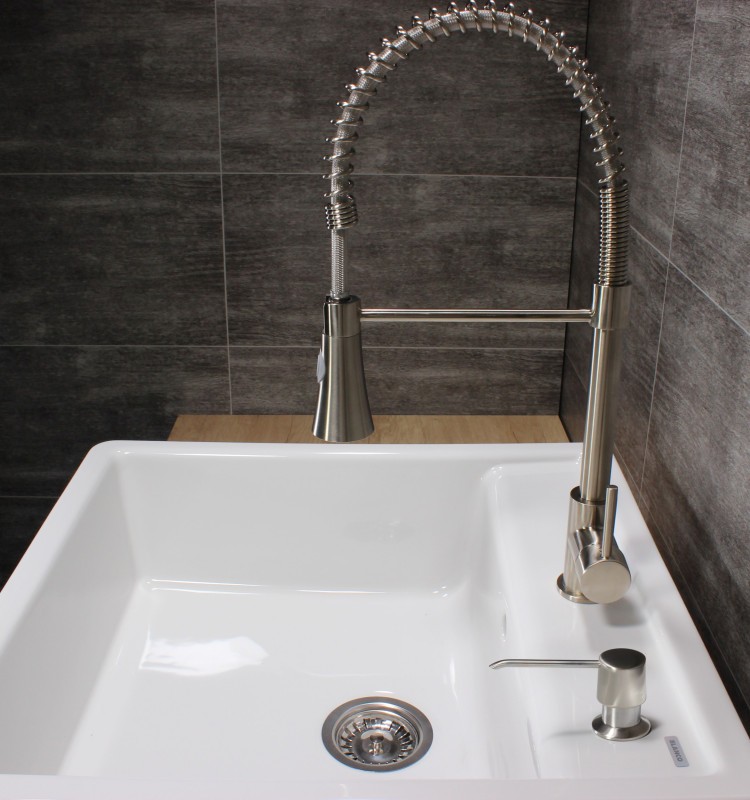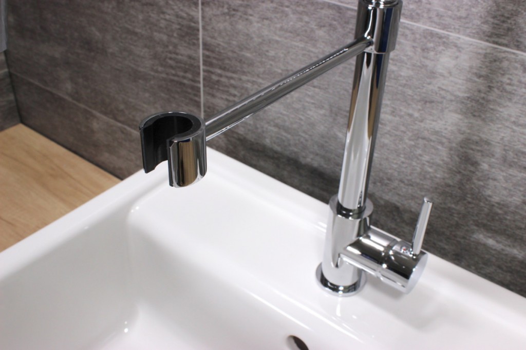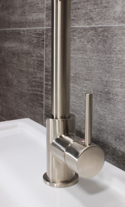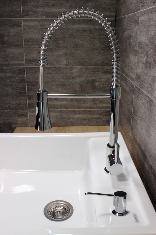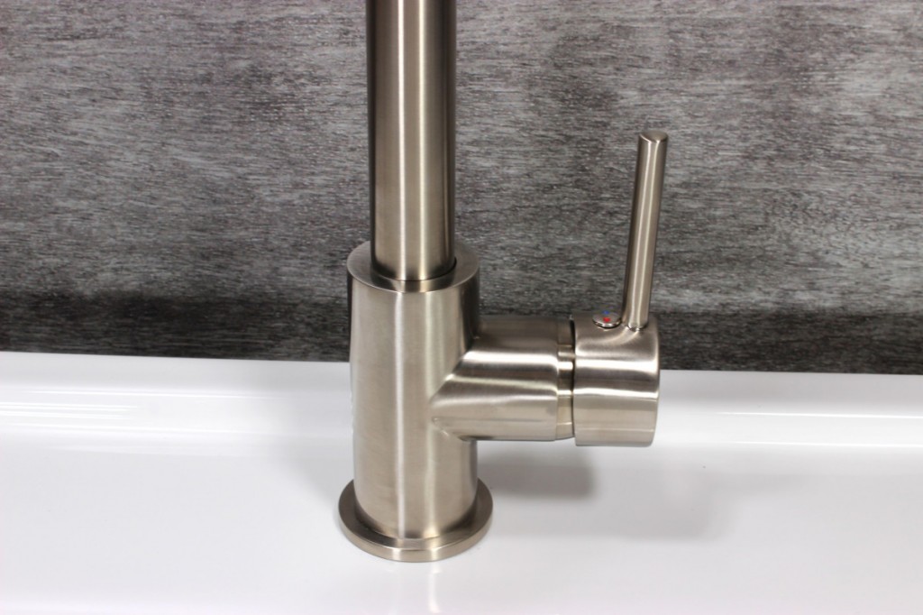 - Kuchynská batéria s otočným výtokom o 360 °, ideálny pre dvojité drezy
