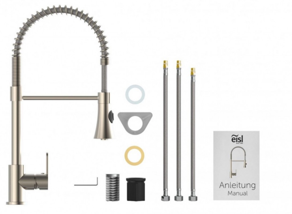 Leon je oblúková batéria od nemeckého výrobcu Eisl s tradíciou od roku 1980. Batéria otočná o 360 °, skvele sa uplatní nielen u väčších dvojdrezov. Hlavica batéria je vybavená spŕškou, ovládanie sprchy je umiestnené priamo na hlavicu pre jednoduché použitie. Výsuvná spŕška je umiestnená na flexibilnú hadicu. Môžete tak ľahko opláchnuť steny drezu, alebo napustět väčšej nádoby vodou. Kuchynská batéria Eisl Leon je vybavená kvalitnou keramickou kartušou. Vysoká kvalita dielenského spracovania zaručuje dlhú životnosť.