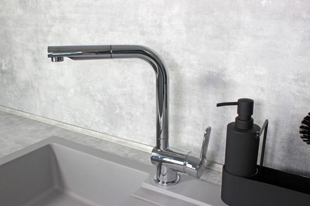 • kuchynská batéria s otočným výtokom o 360 ° C, ideálna pre dvoj drezy