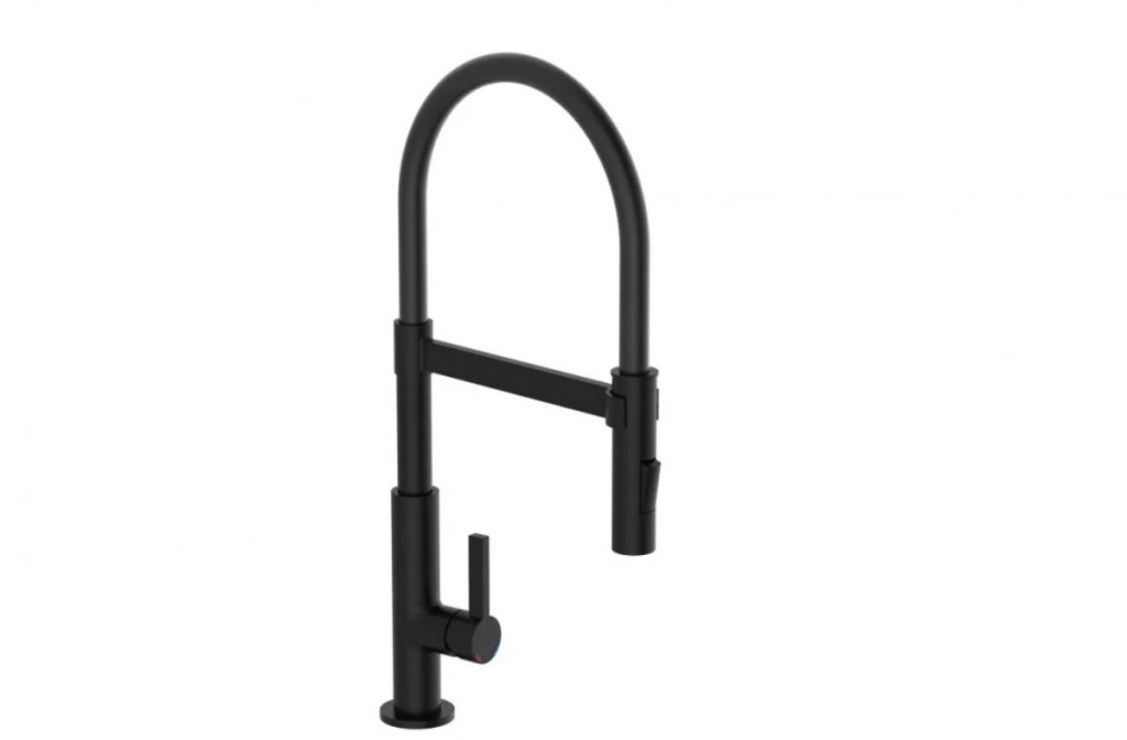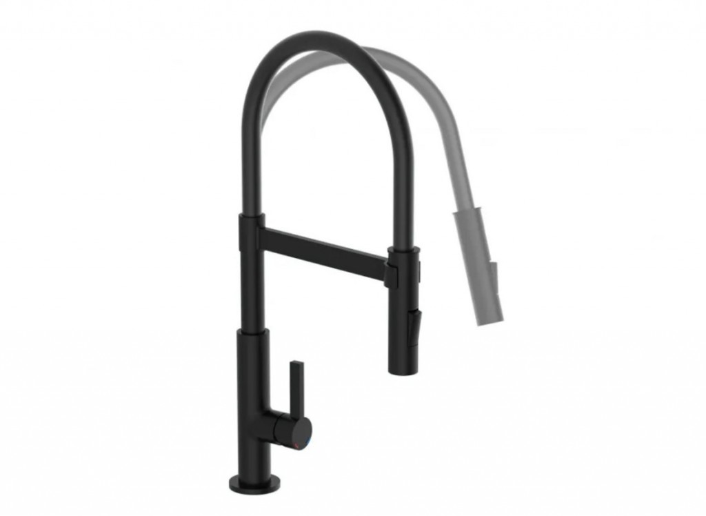 Batéria Miami predstavuje úspešné spojenie dizajnu a funkcie . Vysoko kvalitný výtok so špirálovou pružinou z nerezovej ocele s rozprašovačom na riad. Čierna kuchynská batéria s výsuvným, dvojcestne nastaviteľným sprejom na riad na flexibilné použitie. Batéria je vybavená inovatívnym magnetickým upevnením pre výtok a drží ho vo svojej polohe.