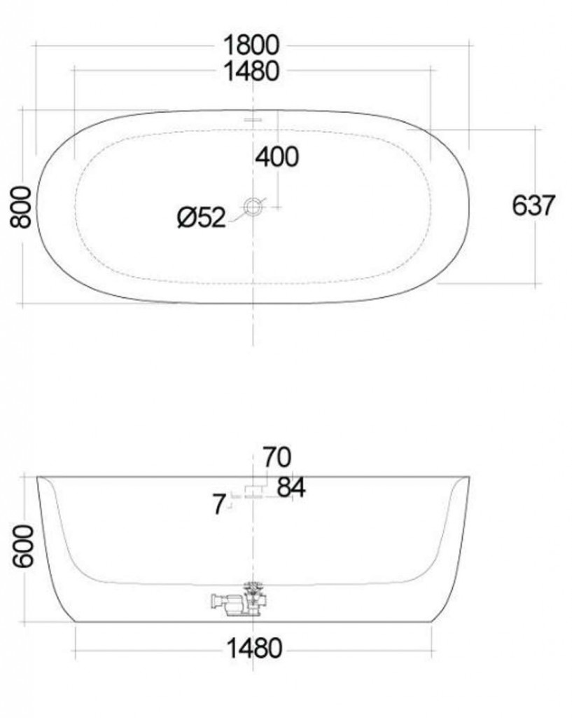 - odtok uprostred s priestorom pre sifón pod dnom vane