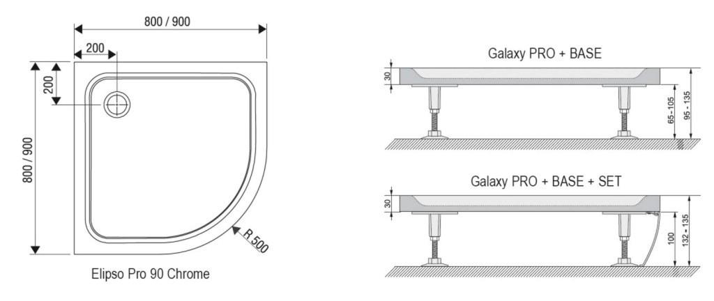 Sprchová vanička Elipso Pro-80 Chrome