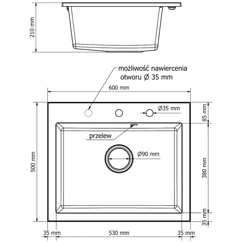Jeden dodatočný vyfrézovaný otvor na samodierovanie ø35