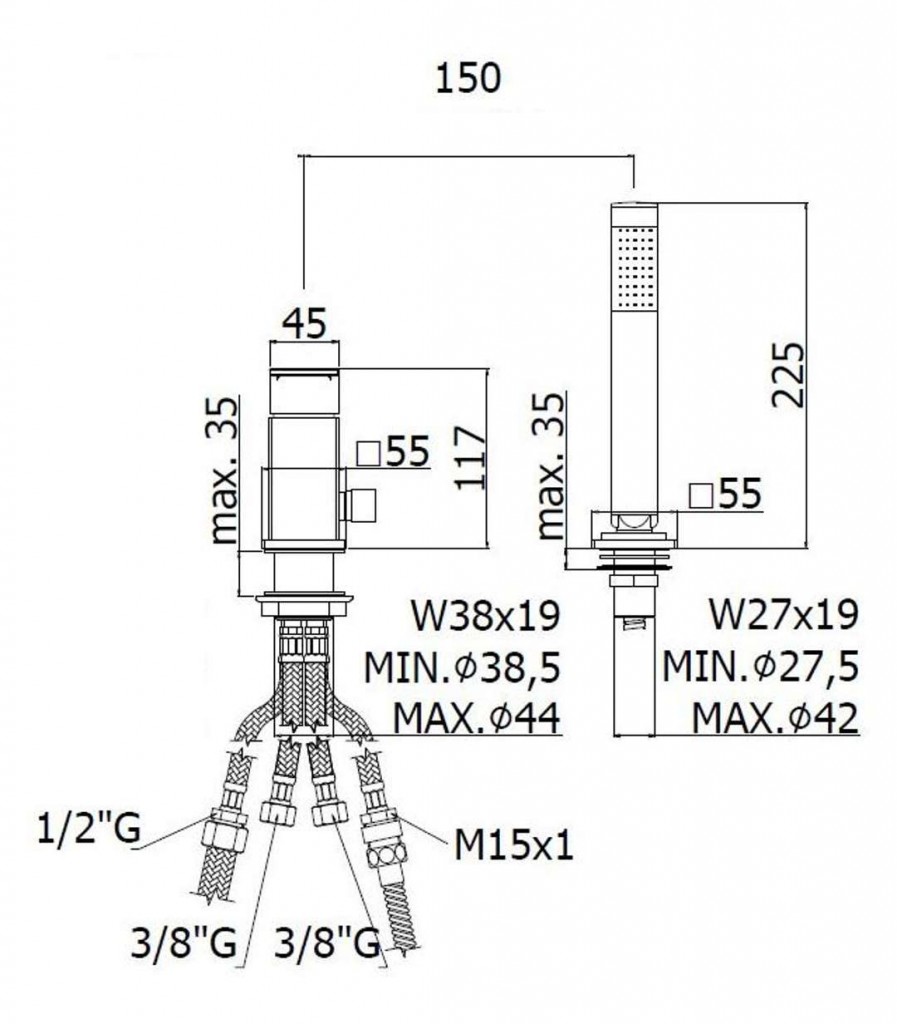 - pre inštaláciu na okraj vane