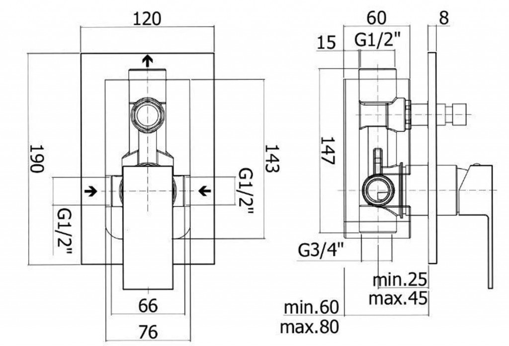 Sprchová páková batéria pod omietku s telesom a prepínačom