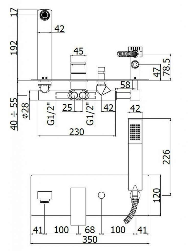 Vaňová páková batéria pod omietku s telesom vrátane sprchového setu