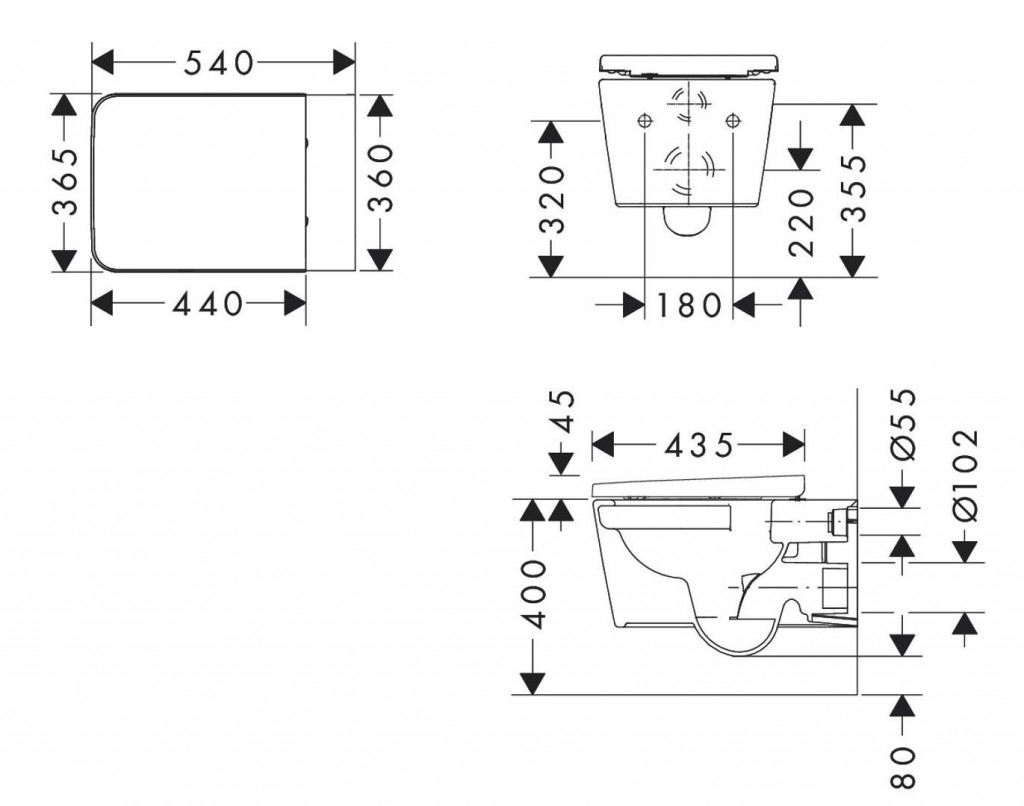- stredové uchytenie WC sedátka: 160 mm