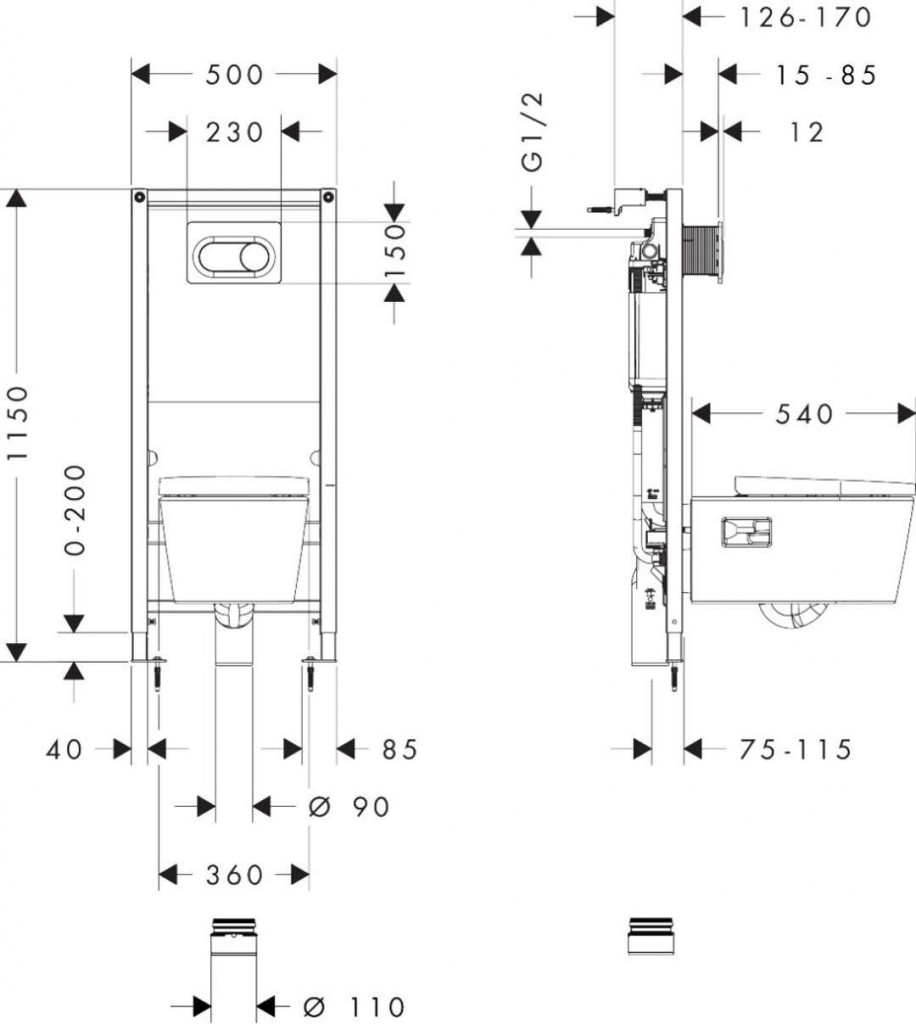 - nastaviteľná hĺbka vypúšťacieho potrubia: 75 - 115 mm