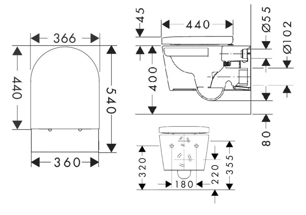 - rozstup stredov uchytenia WC sedátka: 160 mm